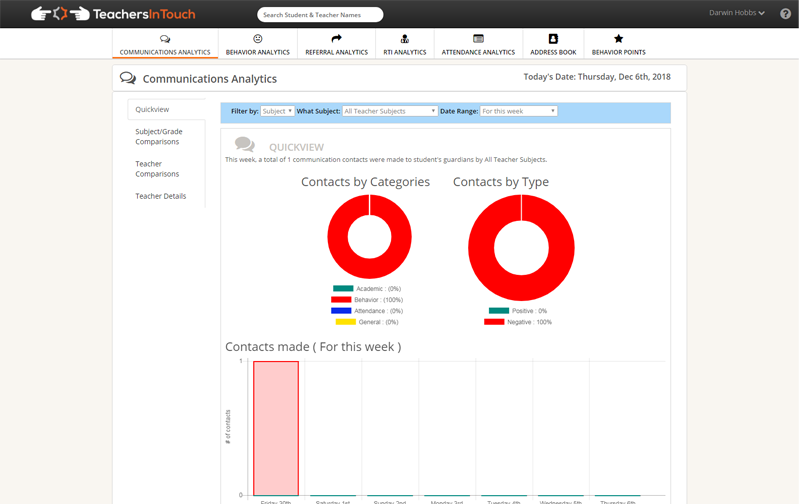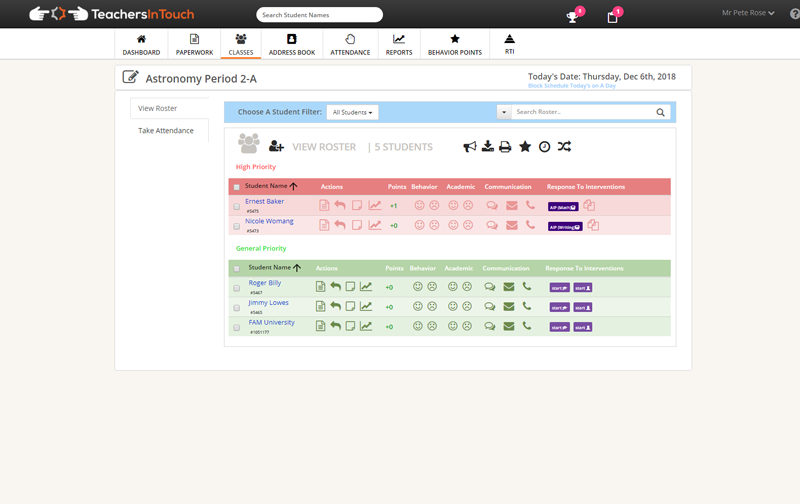 Response to intervention is key to closing the achievement gap and addressing the whole child. RTI is not only a best practice it is also required by law. Districts face lawsuits and fines because of lack of compliance. TeachersInTouch is where the rubber meets the road in the classroom. Completing your paperwork, documenting incidents, interventions, and results are all at your fingertips. Share this with your special education specialists. TeachersinTouch teaches children in the accountability age so we have to bring data to every conversation. Monitor attendance, behavior, and academics to identify students who need more support. Also monitor the school’s efforts in meeting all students’ needs.